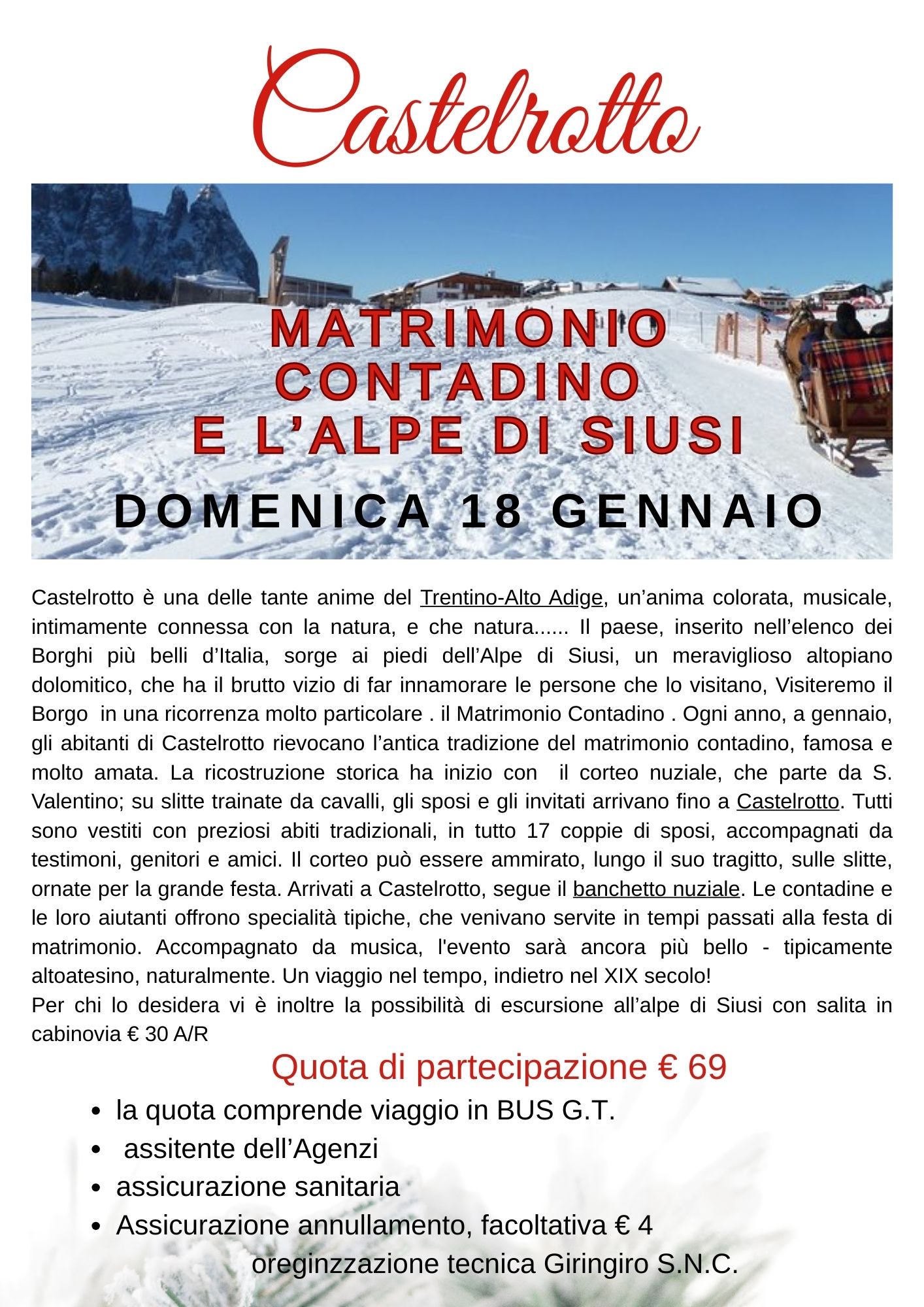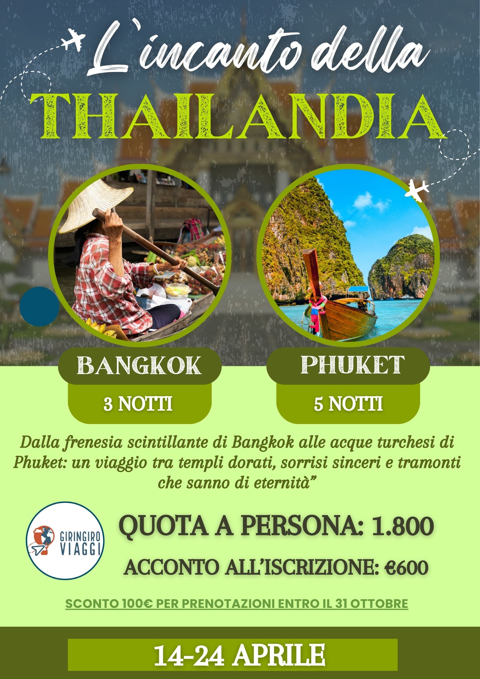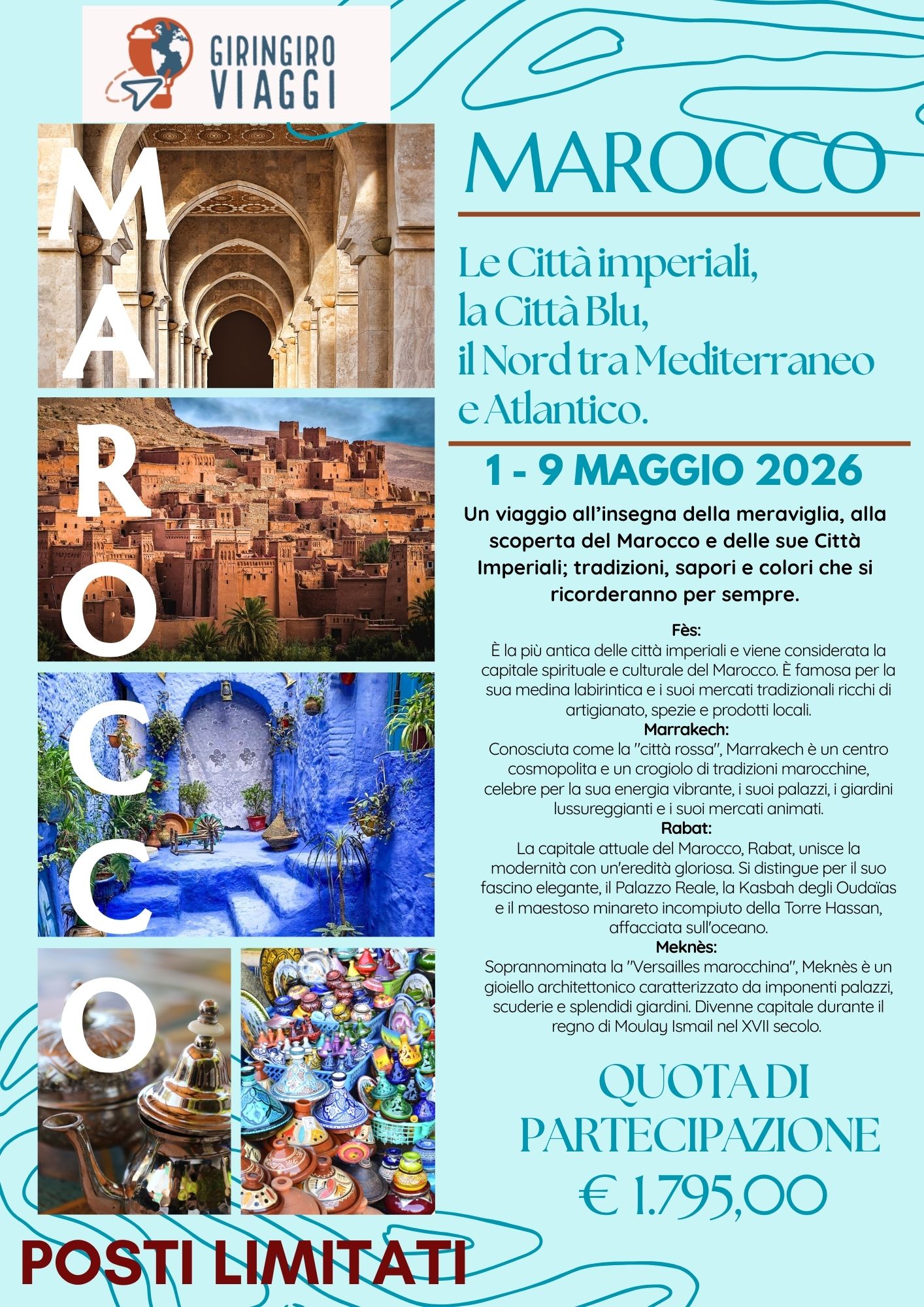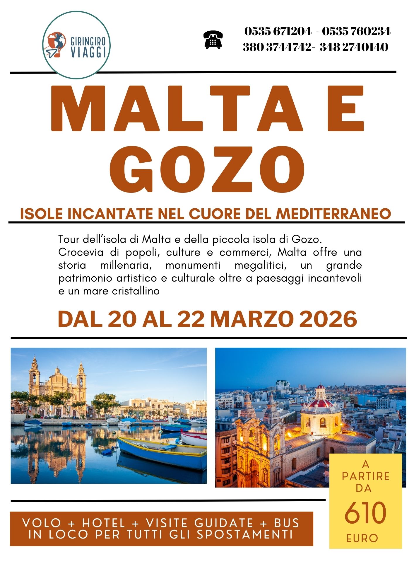 In questa pagina troverai l’elenco completo delle nostre prossime partenze, sono viaggi di più giornate, ciò che li accomuna sono la passione con la quale sono stati studiati per offrirti il meglio che ogni meta possa offrire.